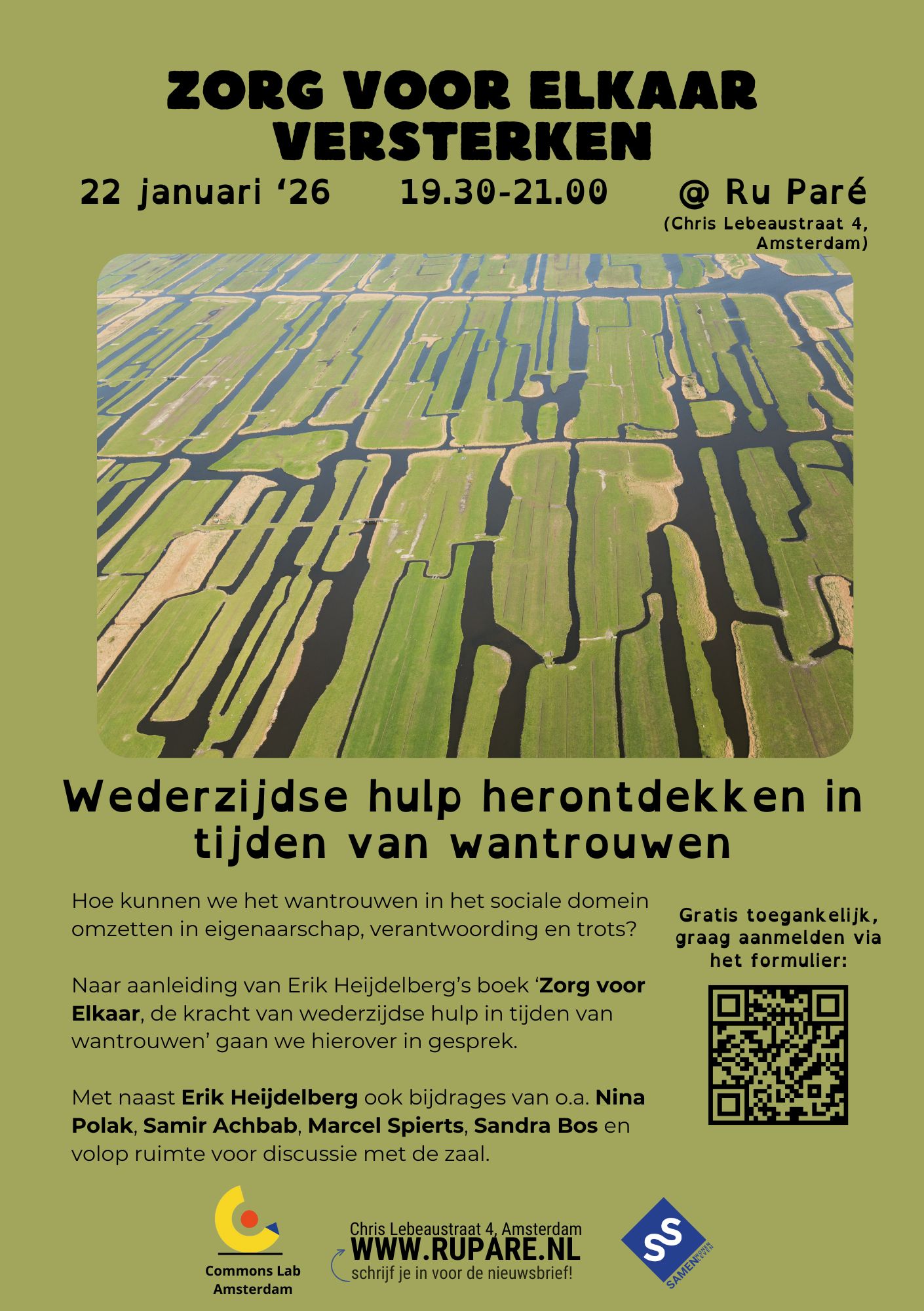 Een gespreksavond naar over zeggenschap van burgers bij het vormgeven van voorzieningen voor zorg en welzijn. Voorafgaand aan het programma is er soep & brood voor wie wil. 19:00 Inloop met soep en brood19:30 Aanvang21:00 Einde/napraat -> Aanmelden kan hier. <- Waar zorg en welzijn vroeger werden gezien als bindmiddel, zijn ze nu vaak een … Lees verder